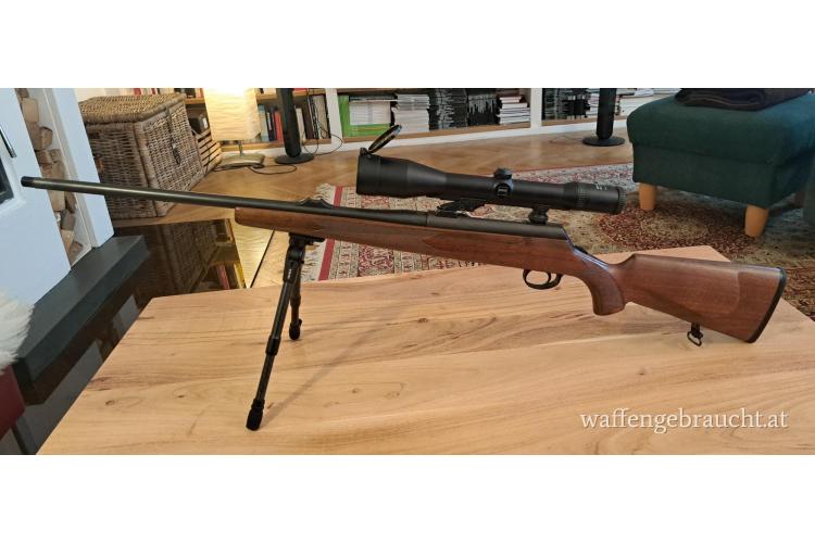 Das Zeiss-ZF ist Made in Germany und fehlerlos, inkl. Schutzkappe vorne. Absehen 4a in erster BE. Die Waffe schießt extrem präzise, auch auf weite Entfernungen. Die Waffe hat einen Druckpunktabzug, der mir im Gebirge und bei Drückjagden gute Dienste geleistet hat. Der Schaft hat Macken, wie sie bei intensiven Gebrauch passieren, aber keine Dellen oder Brüche. Auch nicht abgegriffen.