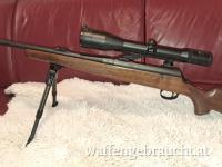 Ich habe die Waffe am Berg mit Spartan-Bipod genutzt. Ich gebe den Adapter mit, der auch eine normale Riemeneöse für den Schultergurt bietet. Eingeschossen ist die Waffe mit Winchester Power-Point Teilmantel 9,7g. Habe in 20 Jahren nie gewechselt, weil sich Waffe und Geschoss blendend verstehen, die Munition extrem kostengünstig ist und der Effekt trotz konventioneller Geschosskonstruktion umwerfend war. Das Spartan-Bipod am Bild steht nicht zum Verkauf.