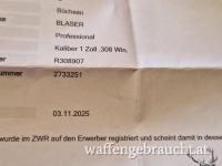 Verkaufe nagelneue blaser r8 308 win professional 52cm mit gewi. Ist ungeschossen kauf datum 3.11 25 mit re. leider falsches geburtags geschernk 06765049675