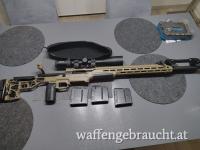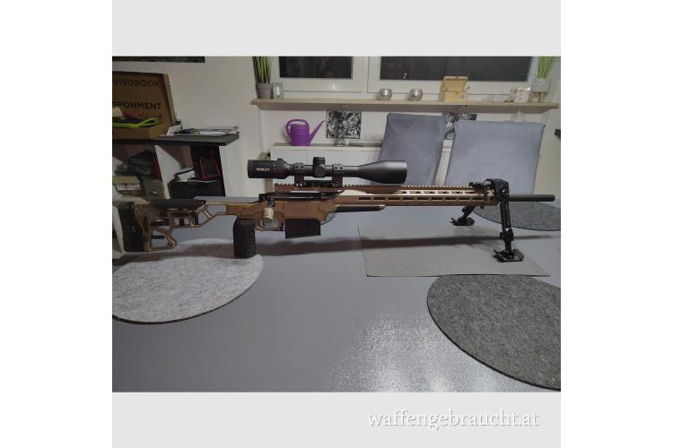 Ausgestattet ist die Büchse mit einem hochwertigen MDD ESS Chassis, einem Fortmeier Zweibein sowie einem Noblex Zielfernrohr, montiert in einer ERA-TAC Schnellspann-Blockmontage. Diese Kombination bietet hervorragende Stabilität, Wiederholgenauigkeit und ist ideal für präzises Schießen auf größere Distanzen.
