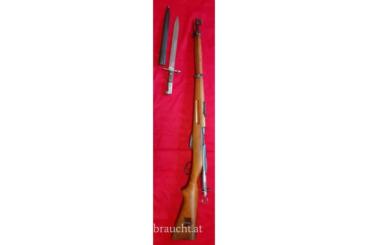 RESERVIERT Karabiner Schmidt Rubin K11 im Kaliber 7,5x55, nicht verbastelt alles original. Schaft mit orig. Stempel, Lauf, System und Verschluss 1A. Inkl. orig. Bajonett mit Scheide und Riemen.