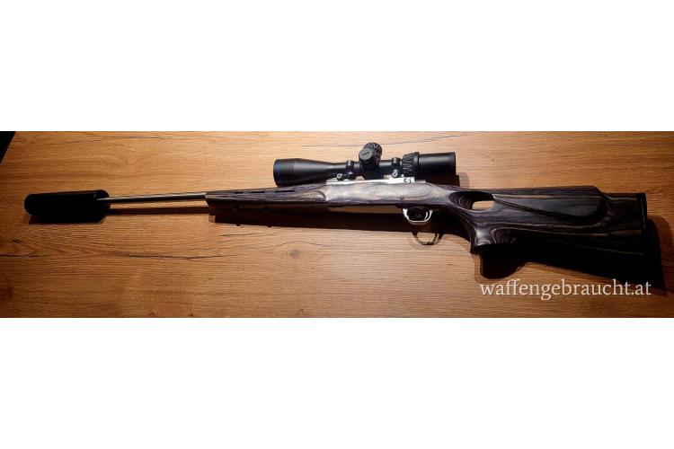 Äußerst präzise M77 in Boyds Schichtholzschaft mit Meopta Glas. 15x1 Mündungsgewinde.