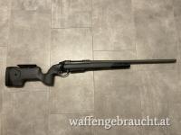 Der Lauf und das Systemgehäuse sind in Cerakote Tungsten beschichtet. Die Waffe ist ungeschossen im Originalkarton mit originaler Händlerrechnung. Voller Aluminium Rahmen sowie V Bettung. Single Stage Abzug (Abzugsgewicht 1–2kg einstellbar, Abzug nach vorne (4mm) und hinten (3mm) einstellbar. Mündungsgewinde 5/8–24“; Picatinny Schiene für Montagen