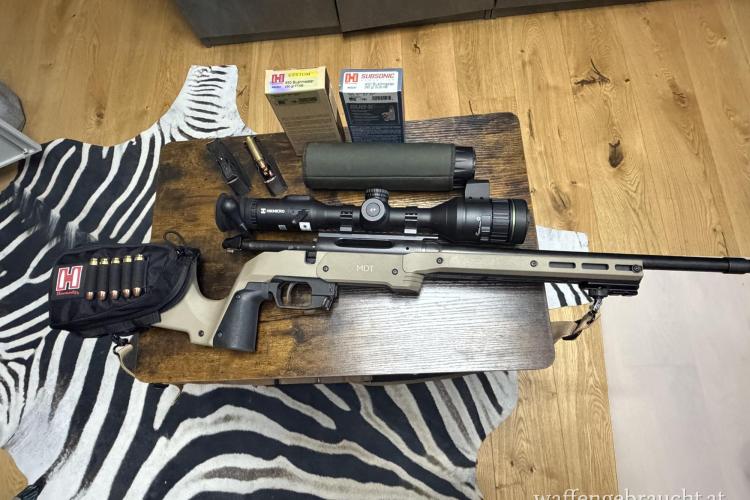 Extrem präzise, mit Subsonic Munition leiser als eine .22lr, extrem führig und das Nachtsichtglas mit integriertem IR Aufheller lässt keine Wünsche offen.