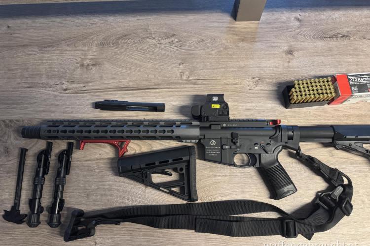 Verkaufe hier meine Schmeisser Ar15 14‘5“ mit einer Eotech Optik (NV), im Preis inkludiert ist ein Wechselsystem auf 22 Kaliber damit man auch in jeder Schießhalle damit schießen darf. Sonstige verbaute Teile sowie Umhängegurt sind ebenfalls im Preis Inkludiert.