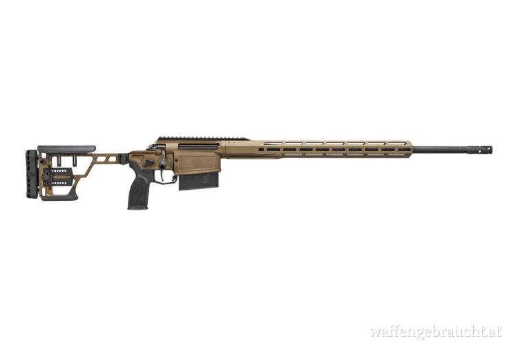 Der wechselfähige Lauf hat eine Länge von 24". Die Montageschiene hat eine 20 MOA Vorneigung.