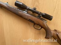 Mit Mündungsgewinde. Die Waffe stammt aus der aus der letzten Mannlicher Produktionsreihe vor Umstellung auf die SBS Modelle. Sie ist in einem guten Zustand und hat ein sehr schönes Schaftholz. Steyr typisch sehr gute Schussleistung.