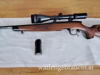 Ich trenne mich wegen Überbestandes von meiner Steyrer 7 mm RemMag. Ich habe sie vor allem zur Rotwildbejagung eingesetzt — eine Jagdart, die ich wegen eines Revierwechsels kaum mehr ausübe. Ich habe bei Beauftragung des Gewindeschneidens bei Büma Enengl auch die Kürzung des Laufes von 65 auf 60 cm durchführen lassen, was die Waffe deutlich führiger gemacht hat — ohne jeden Präzisionsverlust bei Schüssen bis 300 Meter, wie am Schießstand Wr. Neustadt mehrfach nachgewiesen wurde.