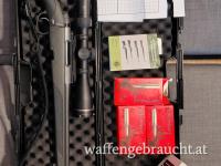 Die Waffe wurde beim Verkäufer, jagdlich auf 4cm Hochschuss auf 100m eingeschossen. Sie wurde bis jetzt nur 2 mal auf dem Schießstand verwendet und hat insgesamt nur 40 Schuss gesehen. Die Waffe besitzt einen Kombiabzug mit einem einstellbaren Direktabzug und einem Französischen Stecher. Die Waffe wurde außerdem vom Hersteller mit einem 15x1 Mündungsgewinde ausgestatter. Die Waffe wurde immer direkt nach und vor dem Einsatz gereinigt und geölt und ist somit in einem quasi neuen Zustand.