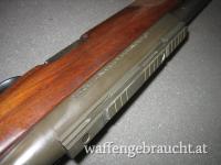 Zustand: Gut mit leichten Gebrauchsspuren am Holz, sehr guter blanker Lauf, Abzugsbügel- Magazinschacht sowie das Magazin sind Neu. Am Vorderschaft ist ein abnehmbarer ( Druckknopf) Riemenbügel vorhanden. Die Büchse ist in einem technisch und optisch einwandfreien Zustand.