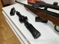 Verkaufe meine Steyr Mannlicher Mod. S im Kaliber 9,3 x 64 mit einem Swarovski Habicht 6 Zielfernglas. Zusätzlich dabei ist ein Fluchtvisier 1-4 x 24, beide Optiken mit Steyr Schwenkmontage versehen. Ein Ersatzmagazin ist auch dabei. Munition hab ich nur mehr 3 Schuss übrig. Die Waffe hat diverse Gebrauchsspuren, speziell an der Magazinzufuhr sind einige Dellen die aber mit schleifen und nachölen ohne viel Auwand zu entfernen sind. Kann unter Voranmeldung gerne besichtigt werden. Preis ist Verhandelbar. Tausch gegen einen schwächeren Repetierer ( mit Optik und Schalldämpfer) möglich.
