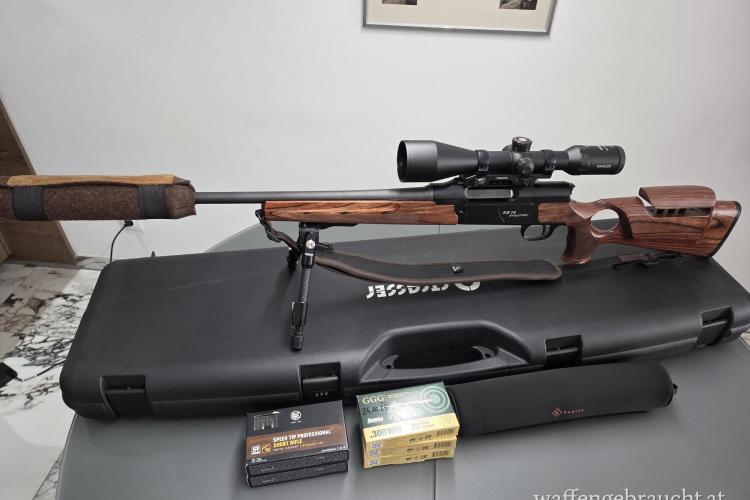 | Zubehör | Schalldämpfer Hausken 224 Xtrem, Schutzhülle Waldkautz, Strasser Bone Zweibein, Riemen Niggeloh, Balistikturm |