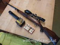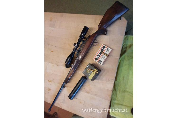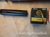 9,3x64, schießt mit Schalldämpfer super ,und Rückstossarm,