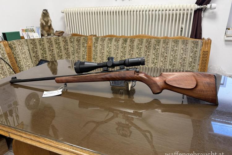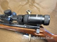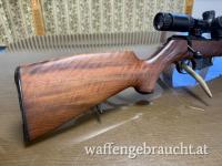 Die Walther hat einen Deutschen Stecher. Das Zielfernrohr und die Montage sind neu. Die Lauflänge beträgt 54cm und die Schaftlänge beträgt 36,5cm.