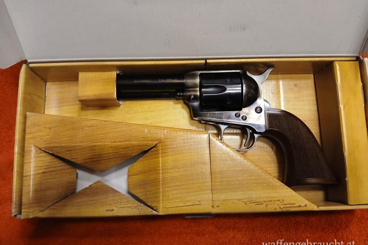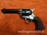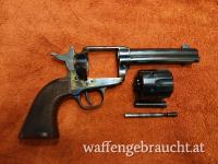 Uberti Cattleman 1873 in der "El Patron" Ausführung. Dieser Revolver ist bereits im Werk verfeinert worden und hat einen samtweichen Schlossgang. Außerdem wurde nachträglich ein Triggerstop eingebaut, so dass er sich hervorragend auch für präzises Schießen eignet. Einteiliger Holzgriff mit Fischhaut. Der Revolver wurde wenig benutzt und hat keine äußerlichen Gebrauchsspuren. Kommt mit der Originalschachtel. Privatverkauf ohne Garantie, oder Gewährleistung. Waffe lagert beim Händler.