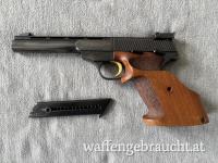 Verkaufe gebrauchte 22er Sportpistole, da ich den Platz auf der WBK benötige. Die Pistole schießt und funktioniert einwandfrei, egal welche Munition, sehr gute Streukreise. Lauf blank, Kimme verstellbar. Ausgezeichneter original Holz Sportgriff, nur für Rechtshänder. Abzugsgewicht bei angenehmen 1200g.