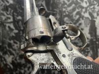 Schöne Sammler Waffe, 9mm Kropatschek Revolver mit schöner Gravur und schon sehr frühen Seriennummer 35 am Griffstück. Im ZWR registriert.