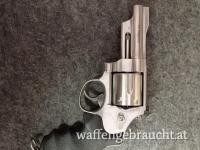 Der S&W Mountain Gun in Stainless Steel hat eine 6-Schuss Trommel. Er weißt sehr geringe Gebrauchsspuren auf.