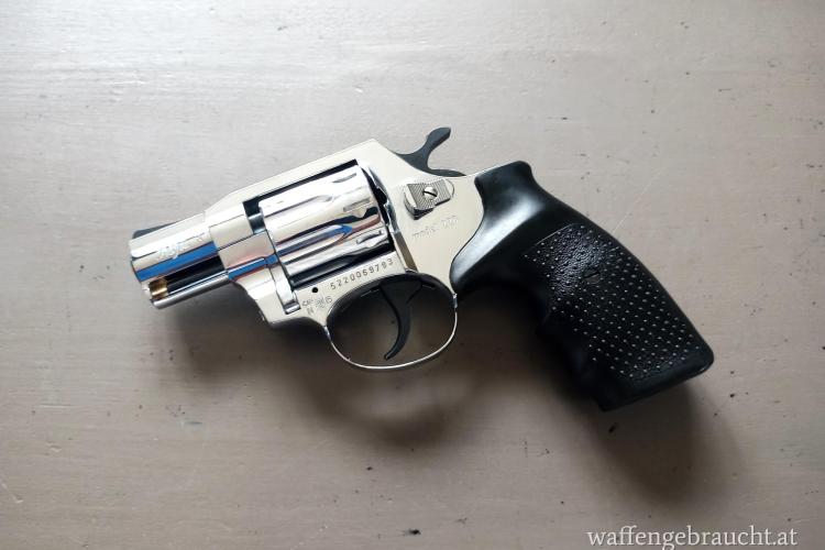 Ganzstahlrevolver, Lauflänge 2 Zoll, 9 Schuss Kapazität.