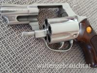 Sehr gepflegter Revolver Taurus 85, stainless, 2", 38 spezial, mit sehr geringen Gebrauchsspuren. Lauf und Patronenkammern blitzblank. 5schüssig. An der Trommel keine Schmauchringe, keine Kratzer oder Schrammen. Gesamtzustand neuwertig, Funktion einwandfrei.