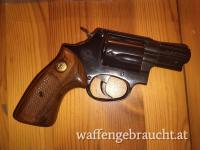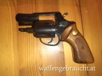 Brünierter fünfschüssiger Snubnose-Revolver mit starrer, im Rahmen integraler Kimme. Schöner Holzgriff. Der Schlagbolzen ist nicht am Hammer montiert, es gibt hingegen eine 'transfer bar'. Dies ist der Fallsicherheit und Langlebigkeit des Schlagbolzens zuträglich.