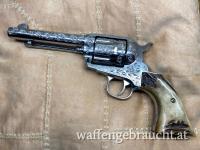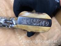 Einzelstück Ruger Old Vaquero, Kaliber 45 Long Colt, "Devils Right Hand" Meistergravur, Griff echtes Horn graviert. Sammlerstück, Unikat. Schuss Belastung: 6 Schuss!!!