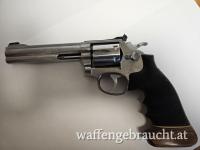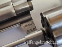 Dieses 617er Modell ist eher selten, stammt es doch als „No Dash Model“ mit 6 Zoll-Lauf aus der ersten Produktionsserie im Jahre 1989. Es ist das optimale Gegenstück zum S&W 686, aber im günstigen 22er Kaliber. Praktisch ident, gleiche Handhabung, gleiche Haptik um günstig zu trainieren. Der 6-schlüssige Revolver aus reinem Edelstahl ist in typisch guter S&W Qualität gefertigt und wiegt zusammen mit seinem aufwändigen und handfreundlichen Hogue-Sportgriff 1335 Gramm. Der Lauf ist spiegelblank. Der Schlossgang ist hervorragend , der gerillte Abzug ist deutlich und klar mit sagenhaften 1100 Gramm .