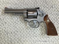 Sechsschüssiger Stainless Steel-Revolver, Lauflänge: 4", erste qualitativ hochwertige Serie, höhen- und seitenverstellbares Visier, das Korn mit roter Kunststoffeinlage, originale Holzgriffschalen mit Fischhaut und Firmenlogo, gebraucht, sehr guter Erhaltungszustand, der Lauf innen spiegelblank, Hörbranz, Bregenz, Vorarlberg