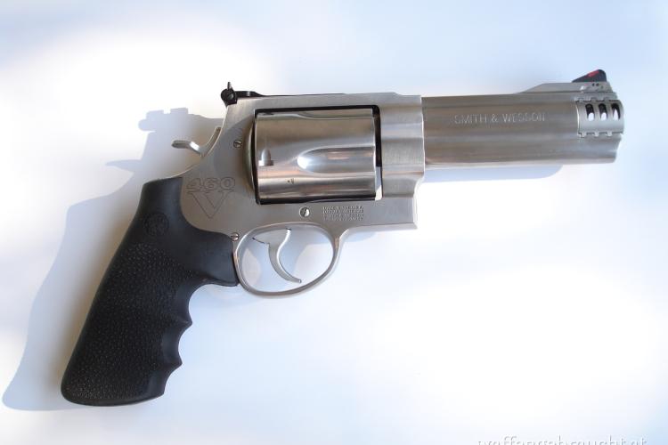 Es wird ein Smith & Wesson 460V Revolver im Kaliber 460 S&W Magnum verkauft. Die Kaliber .45 Long Colt und .454 Casull können ebenfalls mit dieser Waffe verschossen werden.