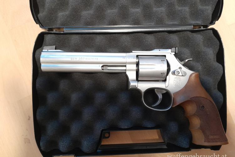 Verkaufe S&W 686 Target Champion Revolver in gutem Zustand. Mit verstellbarer LPA Visierung und Nill-Holzgriff. Wurde überwiegend mit .38 Special genutzt. Sehr gutes Trefferbild. Verkauf wegen anhaltender Nichtnutzung in letzter Zeit (Umstieg auf Pistole).