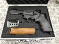 Rotes Korn, verstellbares Visier, 2ter Griff in Holzoptik, Koffer. Sonst nichts. Keine Originalbox, keine Beschreibung.