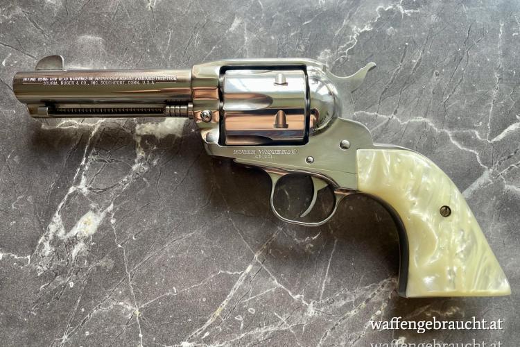 Der Vaquero befindet sich in einem sehr schönen Zustand und ist Online verfügbar. Gerne können Sie auf unserer Webseite unter www.waffen-hager.at "Alle Waffen" stöbern! Wir sind auch auf Instagram und Facebook für Sie erreichbar! In unserem Geschäft haben wir ständig über 300 Neu- Gebraucht- sowie Kurzwaffen lagernd, schauen Sie doch gerne vorbei, wir würden uns freuen!
