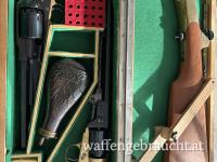 Beide in einem Holzkoffer mit Zubehör (Pulverflasche, Kugeln).