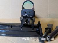 Am Wechselsystem, auf dem Schlitten, ist eine Toni-Systems Adapterplatte für ein Reddot montiert und darauf ist ein Delta HD26 mit 6MOA Reddot montiert.