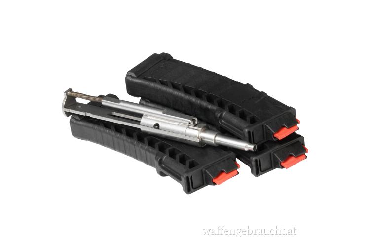 Dank der Magazine mit den Dimensionen Jener in .223 Rem können wie gewohnt Magazintaschen weiterverwendet werden. Die Waffe kann mit dem vorhandenen Set-Up einfach verwendet werden und ermöglicht die Nutzung fast auf jedem Schießstand!