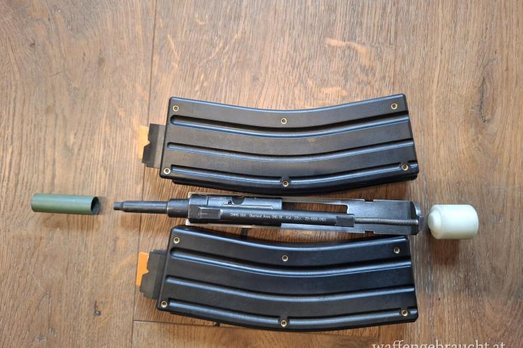 Das Einstecksystem hat ca. 500 Schuss drauf, die Magazine sind wie neu. Sehr gutes System. Ich habe 4 verschiedene Munitionssorten ohne Hemmungen verschossen.