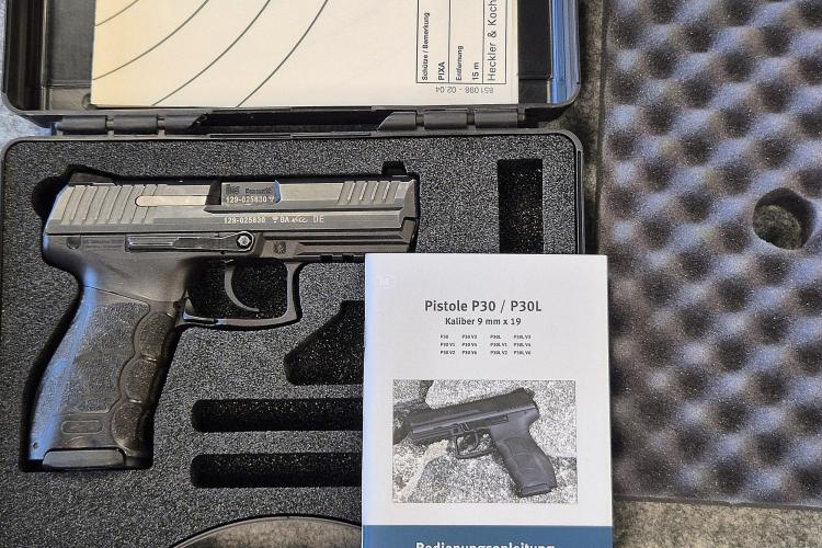 Zum Verkauf steht eine Heckler & Koch P30-V4 – eine bewährte Dienstpistole in Surplus-Zustand. Die Waffe wurde fachgerecht eingesetzt, weist typische Gebrauchsspuren auf, funktioniert einwandfrei und wurde technisch geprüft. 📸🔍