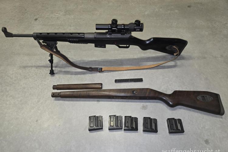 | Zubehör | Original Holzschaft, Original H&K Picatinny schiene, 6 Stück 10 Schuss Magazine, Gewehrriemen, Zweibein |