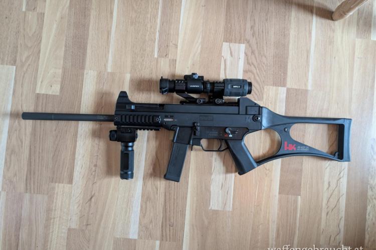 Verkaufe aus Platzgründen meine geliebte USC die ich mir vor knapp einem Jahr fabrikneu von H&K hab kommen lassen. In der Zwischenzeit wurden ca. 800-1000 Schuss damit abgegeben, nach jeweils 50 Schüssen kam die Boresnake zum Einsatz, alle 150-200 Schuss wurde sie komplett zerlegt, chemisch gereinigt und geölt. Über die USC selbst brauch ich nicht viel zu erzählen, ich habe meiner alle Rails (2x Side, Top Rail, Longrail) besorgt (was für ein mühsames Zusammensammeln!) besorgt sodass auch ein Bipod mit einer anderen Laser/Licht Konfiguration möglich ist. Im Moment ist ein taktischer Griff mit dabei samt Taschenlampe+Strobo+Laserpointer einfach mit dem Daumen an- und abschaltbar. Der Laserpointer ist aktuell mit Boresight auf 4m halbwegs eingeschossen.