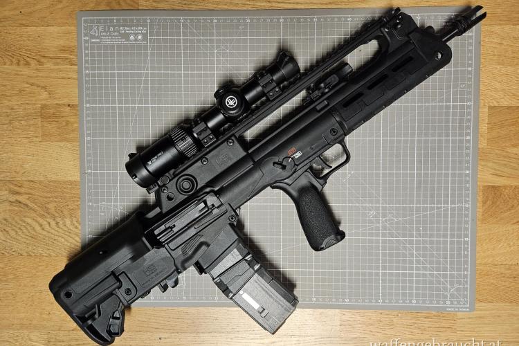 | Visierung | Inkl. Klappvisierung: Front-Sight höhenverstellbar, Rear Sight mit 5-stufiger Blende für unter 100 bis 500 Meter, werkzeuglos ve |