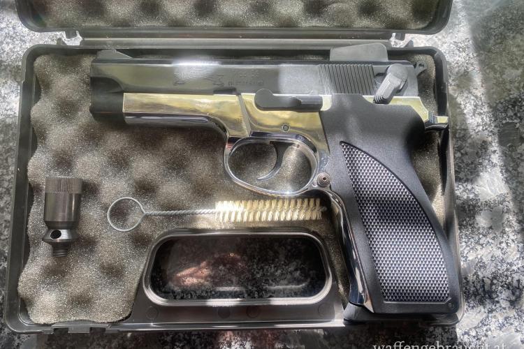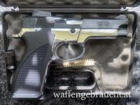 Die IWG Modell 59 stellt einen Nachbau des "scharfen"Smith & Wesson Models 5904 dar, die von vielen Amerikanischen Behörden genutzt wird. Wunderschöne Pistole in schwarz und Silber. Ein tolles Sammlerstück aus den 1990. In originaler Box, inklusive Zubehör wie Abschussbecher und Bürste.