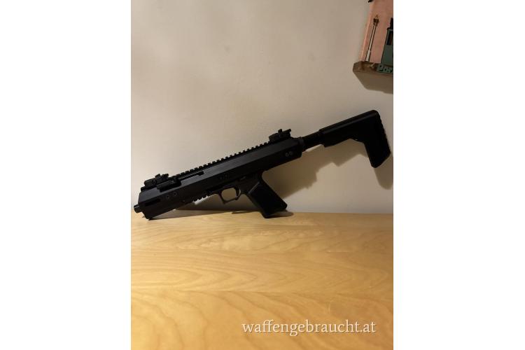 Die Waffe wird abgegeben ohne den Schaft und ohne die flip-up Sights!