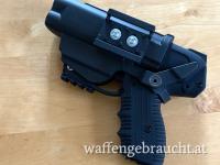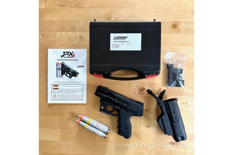 Beim JPX 4 LE handelt es sich um die Full-size Behörden-Version. Er verfügt über einen roten Laser und eine Picatinny-Schiene, die Kartuschen sind einzeln austauschbar.