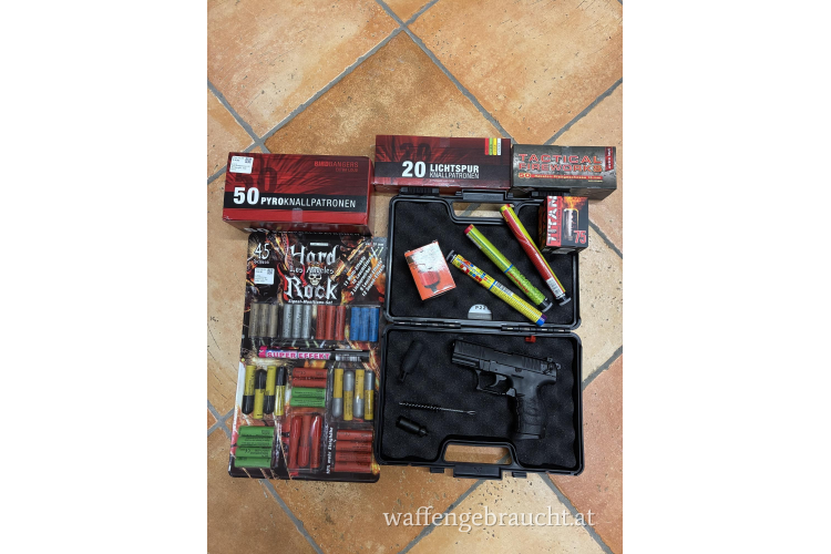 Riesiges Silvesterpaket! Walther P22Q 9mmPAK inkl. 75-Schuss Platzpatronen + 195 Schuss Feuerwerk + Multi Shooter