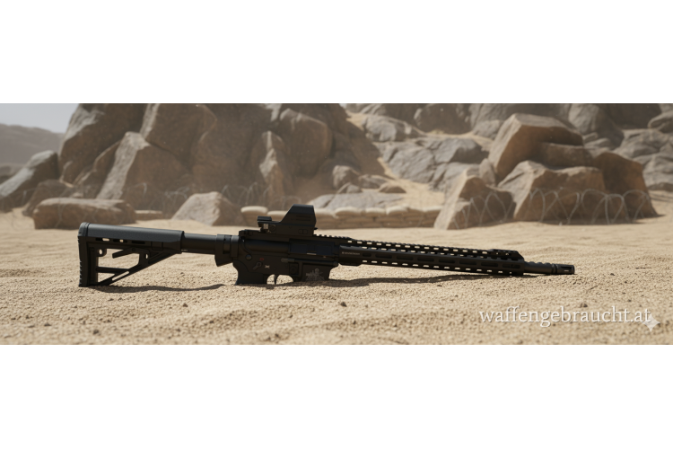 Präzise gebaute Schmeisser AR-15 in 9mm, Lauflänge 14,5". Sonderauflage mit graviertem/gedrucktem Holzhacker-Challenge-Logo. Übergabe nach gesetzlicher Regelung.