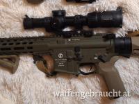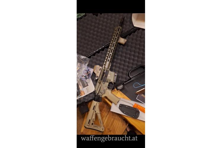 Die Schmeisser AR15 ist eine besonders führige SL-Büchse für die Anwendungsbereiche Jagd und Sport mit freischwingendem Lauf. Diese Waffe hat einen No Flash Mündungsfeuerdämpfer, einen schlanken M-Lok Vorderschaft und einen verstellbaren Stahlgasblock. Der Two-Stage Trigger garantiert eine klar definierte trockene Schußauslösung. Sowohl Sicherung, Magazinauslöser, Durchladehebel als auch Verschlussfang sind beidseitig ausgelegt. Die Solid-Verstärkung am Lower erhöht die Stabilitität um ein Vielfaches gegenüber herkömmlichen AR15.