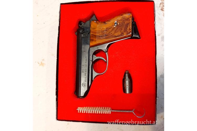 Sammlerpistole in Originalschachtel mit Zubehör Reck PK 800 mit Kunststoffschalen, neuwertiger Zustand, mit 15 Stk Platzpatronen und 6 Stk Reizgasmunition
