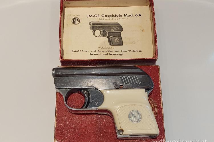 Defekte antike 6mm Schreckschusspistole. Die Griffschalen sind an den Verschraubungen ausgebrochen. Keine Funktion, an Bastler. Versand 7€.