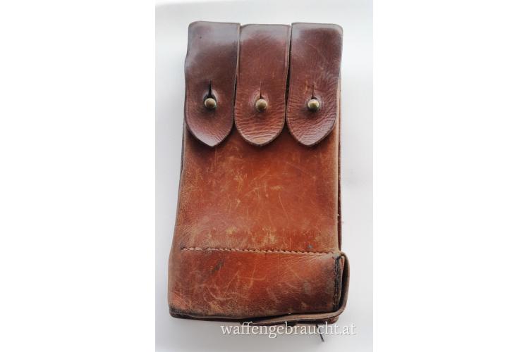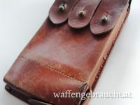 Biete eine Rarität für Gendarmeriesammler wegen Doppelbestand! Originale 3er Magazinstasche für Magazine der Maschinenpistole UZI !!! Mit Abnahmestempel "GBA ...." (= Gendarmerie Beschaffungsamt ....). Hergestellt wurden die hochwertigen Lederwaren damals von STOLLA Wien. Die Tasche ist vom Design her angelehnt an die MP38/40 Tasche aus dem WWII, welche zT auch von STOLLA Wien gefertigt wurden. Schöner gebrauchter Zustand, nichts zerrissen! Privatverkauf.