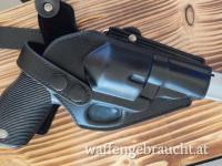 Große .357er Revolver passen sehr gut rein und der Holster hält die Waffe auch sehr fest, da die Wandstärke der Hülle sehr robust ist. Laut Händler sollten 44. Magnum Revolver auch passen.